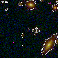 Object #2447 x,y = (2372, 2749) RA, Dec = (00:32:11.808, 18:08:07.80) = (8.04920, 18.13550) BPZ = 0.706 [0.273--4.556] type = 8.30 (SB1_B10 - SB2_B10) chisq2 = 0.94 ODDS = 0.11 z_cluster = 0.396