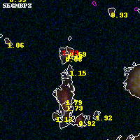 Object #2461 x,y = (1575, 2738) RA, Dec = (00:32:15.144, 18:08:07.08) = (8.06310, 18.13530) BPZ = 1.152 [1.110--2.617] type = 10.00 (SB3_B10) chisq2 = 0.59 ODDS = 0.19 z_cluster = 0.396
