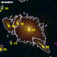 Object #2657 x,y = (1706, 2598) RA, Dec = (00:32:14.592, 18:07:58.80) = (8.06080, 18.13300) BPZ = 0.716 [0.633--0.764] type = 5.90 (Sbc_B10 - ES0_B10) chisq2 = 0.07 ODDS = 0.95 z_cluster = 0.396