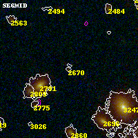 Object #2670 x,y = (2294, 2639) RA, Dec = (00:32:12.120, 18:08:01.32) = (8.05050, 18.13370) BPZ = 0.621 [0.106--3.287] type = 9.70 (SB3_B10 - SB2_B10) chisq2 = 0.80 ODDS = 0.15 z_cluster = 0.396
