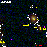 Object #2725 x,y = (1856, 2611) RA, Dec = (00:32:13.968, 18:07:59.52) = (8.05820, 18.13320) BPZ = 1.149 [0.174--3.084] type = 10.00 (SB3_B10) chisq2 = 0.69 ODDS = 0.16 z_cluster = 0.396
