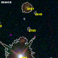 Object #2765 x,y = (3485, 2591) RA, Dec = (00:32:07.104, 18:07:58.44) = (8.02960, 18.13290) BPZ = 0.052 [0.014--0.398] type = 8.70 (SB2_B10 - SB1_B10) chisq2 = 0.26 ODDS = 0.74 z_cluster = 0.396