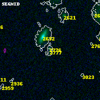 Object #2777 x,y = (1303, 2584) RA, Dec = (00:32:16.296, 18:07:57.72) = (8.06790, 18.13270) BPZ = 0.435 [0.105--2.624] type = 10.00 (SB3_B10) chisq2 = 0.03 ODDS = 0.07 z_cluster = 0.396