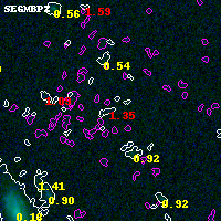 Object #2792 x,y = (3944, 2587) RA, Dec = (00:32:05.184, 18:07:58.08) = (8.02160, 18.13280) BPZ = 1.354 [0.915--2.417] type = 11.00 (SB11_A_0_l) chisq2 = 6.41 ODDS = 0.16 z_cluster = 0.396