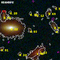 Object #2814 x,y = (3103, 2573) RA, Dec = (00:32:08.712, 18:07:57.36) = (8.03630, 18.13260) BPZ = 4.030 [0.451--4.324] type = 9.40 (SB2_B10 - SB3_B10) chisq2 = 0.23 ODDS = 0.59 z_cluster = 0.396