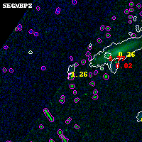 Object #2824 x,y = (530, 2566) RA, Dec = (00:32:19.560, 18:07:56.64) = (8.08150, 18.13240) BPZ = 1.265 [0.131--3.168] type = 8.60 (SB2_B10 - SB1_B10) chisq2 = 0.00 ODDS = 0.09 z_cluster = 0.396