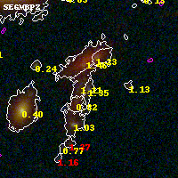 Object #2949 x,y = (3127, 2468) RA, Dec = (00:32:08.616, 18:07:50.88) = (8.03590, 18.13080) BPZ = 1.347 [1.157--1.522] type = 9.80 (SB3_B10 - SB2_B10) chisq2 = 0.08 ODDS = 0.67 z_cluster = 0.396