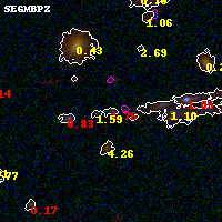 Object #2980 x,y = (2212, 2504) RA, Dec = (00:32:12.480, 18:07:53.04) = (8.05200, 18.13140) BPZ = 1.759 [0.071--2.753] type = 11.00 (SB11_A_0_l) chisq2 = 1.43 ODDS = 0.22 z_cluster = 0.396