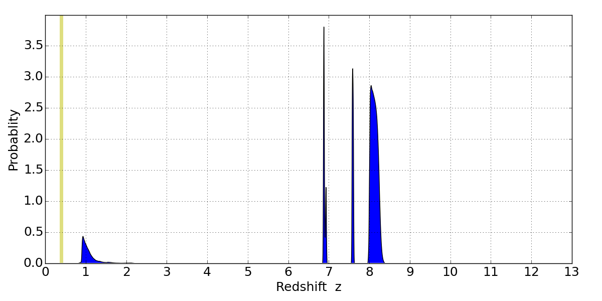 Best viewed in a wide browser window (1200 pixels or more). Download SED & P(z) plots to view larger versions.