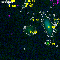 Object #3003 x,y = (3800, 2480) RA, Dec = (00:32:05.784, 18:07:51.60) = (8.02410, 18.13100) BPZ = 0.609 [0.492--0.729] type = 7.40 (Scd_B10 - SB1_B10) chisq2 = 0.00 ODDS = 0.72 z_cluster = 0.396