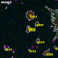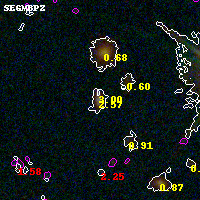 Object #3028 x,y = (3325, 2471) RA, Dec = (00:32:07.776, 18:07:51.24) = (8.03240, 18.13090) BPZ = 2.569 [2.412--2.942] type = 8.80 (SB2_B10 - SB1_B10) chisq2 = 0.27 ODDS = 0.86 z_cluster = 0.396