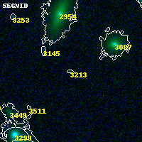 Object #3213 x,y = (830, 2397) RA, Dec = (00:32:18.288, 18:07:46.56) = (8.07620, 18.12960) BPZ = 0.490 [0.267--4.442] type = 6.10 (Sbc_B10 - Scd_B10) chisq2 = 0.43 ODDS = 0.11 z_cluster = 0.396