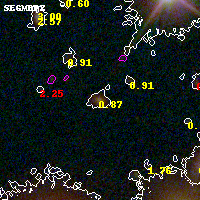 Object #3216 x,y = (3386, 2388) RA, Dec = (00:32:07.536, 18:07:46.20) = (8.03140, 18.12950) BPZ = 0.872 [0.673--0.916] type = 7.90 (SB1_B10 - Scd_B10) chisq2 = 0.52 ODDS = 0.61 z_cluster = 0.396