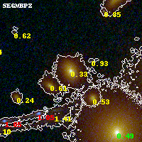 Object #3247 x,y = (2374, 2585) RA, Dec = (00:32:11.784, 18:07:58.08) = (8.04910, 18.13280) BPZ = 0.329 [0.289--0.407] type = 5.20 (ES0_B10 - Sbc_B10) chisq2 = 0.05 ODDS = 0.90 z_cluster = 0.396