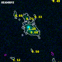 Object #3334 x,y = (759, 2296) RA, Dec = (00:32:18.576, 18:07:40.44) = (8.07740, 18.12790) BPZ = 0.599 [0.497--0.697] type = 7.80 (SB1_B10 - Scd_B10) chisq2 = 0.00 ODDS = 0.79 z_cluster = 0.396