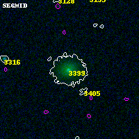 Object #3399 x,y = (1293, 2323) RA, Dec = (00:32:16.344, 18:07:42.24) = (8.06810, 18.12840) BPZ = 0.420 [0.285--0.491] type = 5.60 (Sbc_B10 - ES0_B10) chisq2 = 0.00 ODDS = 0.61 z_cluster = 0.396