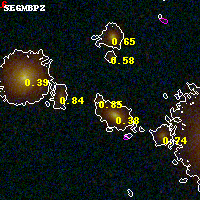 Object #3408 x,y = (3208, 2290) RA, Dec = (00:32:08.280, 18:07:40.08) = (8.03450, 18.12780) BPZ = 0.847 [0.230--3.891] type = 8.80 (SB2_B10 - SB1_B10) chisq2 = 0.58 ODDS = 0.28 z_cluster = 0.396