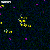 Object #3573 x,y = (1421, 2211) RA, Dec = (00:32:15.792, 18:07:35.40) = (8.06580, 18.12650) BPZ = 1.045 [0.260--2.198] type = 9.30 (SB2_B10 - SB3_B10) chisq2 = 0.15 ODDS = 0.16 z_cluster = 0.396