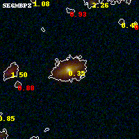 Object #3619 x,y = (1754, 2172) RA, Dec = (00:32:14.400, 18:07:33.24) = (8.06000, 18.12590) BPZ = 0.349 [0.298--0.422] type = 5.40 (ES0_B10 - Sbc_B10) chisq2 = 0.06 ODDS = 0.91 z_cluster = 0.396