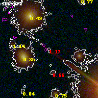Object #3631 x,y = (1964, 2344) RA, Dec = (00:32:13.512, 18:07:43.68) = (8.05630, 18.12880) BPZ = 1.174 [0.651--2.561] type = 6.60 (Scd_B10 - Sbc_B10) chisq2 = 3.30 ODDS = 0.14 z_cluster = 0.396