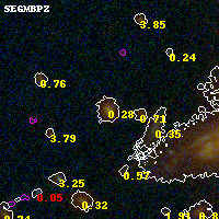 Object #3753 x,y = (2383, 2094) RA, Dec = (00:32:11.760, 18:07:28.56) = (8.04900, 18.12460) BPZ = 0.276 [0.198--0.329] type = 3.80 (Ell4_A_0 - Ell5_A_0) chisq2 = 0.14 ODDS = 0.88 z_cluster = 0.396