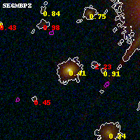Object #3842 x,y = (1948, 2173) RA, Dec = (00:32:13.584, 18:07:33.24) = (8.05660, 18.12590) BPZ = 0.414 [0.332--0.456] type = 4.20 (Ell4_A_0 - ES0_B10) chisq2 = 0.04 ODDS = 0.88 z_cluster = 0.396