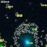 Object #3924 x,y = (1220, 2001) RA, Dec = (00:32:16.656, 18:07:22.80) = (8.06940, 18.12300) BPZ = 0.920 [0.474--10.252] type = 10.40 (SB3_B10 - SB11_A_0_l) chisq2 = 5.62 ODDS = 0.27 z_cluster = 0.396