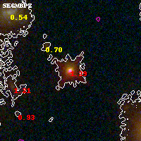 Object #4005 x,y = (3056, 1990) RA, Dec = (00:32:08.928, 18:07:22.08) = (8.03720, 18.12280) BPZ = 1.293 [1.261--1.325] type = 1.00 (Ell7_A_0) chisq2 = 7.97 ODDS = 1.00 z_cluster = 0.396