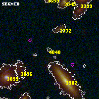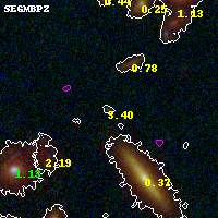 Object #4040 x,y = (3392, 2042) RA, Dec = (00:32:07.512, 18:07:25.32) = (8.03130, 18.12370) BPZ = 3.402 [0.297--3.651] type = 11.00 (SB11_A_0_l) chisq2 = 0.25 ODDS = 0.73 z_cluster = 0.396