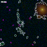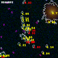 Object #4083 x,y = (1593, 1850) RA, Dec = (00:32:15.072, 18:07:13.80) = (8.06280, 18.12050) BPZ = 1.349 [0.739--2.527] type = 11.00 (SB11_A_0_l) chisq2 = 3.96 ODDS = 0.13 z_cluster = 0.396