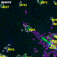 Object #4103 x,y = (4056, 1877) RA, Dec = (00:32:04.704, 18:07:15.60) = (8.01960, 18.12100) BPZ = 0.912 [0.767--1.374] type = 7.00 (Scd_B10) chisq2 = 0.00 ODDS = 0.44 z_cluster = 0.396