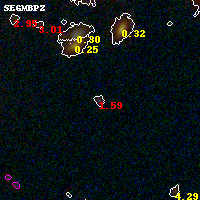 Object #4121 x,y = (3319, 1868) RA, Dec = (00:32:07.800, 18:07:14.88) = (8.03250, 18.12080) BPZ = 1.593 [1.024--1.782] type = 9.70 (SB3_B10 - SB2_B10) chisq2 = 1.68 ODDS = 0.46 z_cluster = 0.396