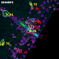 Object #4133 x,y = (4135, 1822) RA, Dec = (00:32:04.368, 18:07:12.00) = (8.01820, 18.12000) BPZ = 0.257 [0.129--1.411] type = 8.30 (SB1_B10 - SB2_B10) chisq2 = 0.00 ODDS = 0.12 z_cluster = 0.396