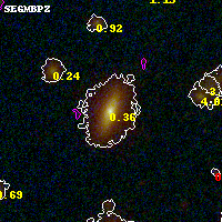 Object #4211 x,y = (2186, 1793) RA, Dec = (00:32:12.576, 18:07:10.56) = (8.05240, 18.11960) BPZ = 0.362 [0.324--0.437] type = 5.20 (ES0_B10 - Sbc_B10) chisq2 = 0.03 ODDS = 0.91 z_cluster = 0.396