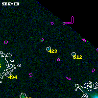 Object #423 x,y = (2868, 4268) RA, Dec = (00:32:09.696, 18:09:38.88) = (8.04040, 18.16080) BPZ = 0.387 [0.047--3.102] type = 10.80 (SB11_A_0_l - SB3_B10) chisq2 = 0.36 ODDS = 0.18 z_cluster = 0.396