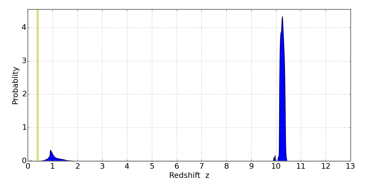 Best viewed in a wide browser window (1200 pixels or more). Download SED & P(z) plots to view larger versions.