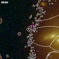 Object #4245 x,y = (2401, 1792) RA, Dec = (00:32:11.688, 18:07:10.20) = (8.04870, 18.11950) BPZ = 0.841 [0.340--2.528] type = 9.70 (SB3_B10 - SB2_B10) chisq2 = 2.04 ODDS = 0.19 z_cluster = 0.396
