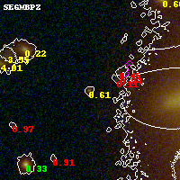 Object #4293 x,y = (2366, 1777) RA, Dec = (00:32:11.832, 18:07:09.48) = (8.04930, 18.11930) BPZ = 0.613 [0.260--1.032] type = 7.60 (SB1_B10 - Scd_B10) chisq2 = 0.79 ODDS = 0.39 z_cluster = 0.396
