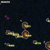 Object #4311 x,y = (3304, 1757) RA, Dec = (00:32:07.872, 18:07:08.40) = (8.03280, 18.11900) BPZ = 0.677 [0.407--0.743] type = 7.50 (SB1_B10 - Scd_B10) chisq2 = 0.14 ODDS = 0.47 z_cluster = 0.396