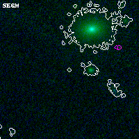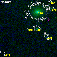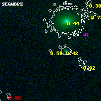 Object #436 x,y = (2519, 4246) RA, Dec = (00:32:11.184, 18:09:37.80) = (8.04660, 18.16050) BPZ = 0.580 [0.197--3.578] type = 8.70 (SB2_B10 - SB1_B10) chisq2 = 0.02 ODDS = 0.08 z_cluster = 0.396