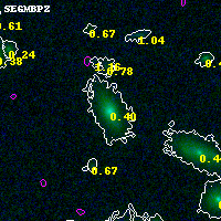 Object #440 x,y = (2197, 4213) RA, Dec = (00:32:12.528, 18:09:35.64) = (8.05220, 18.15990) BPZ = 0.397 [0.311--0.470] type = 5.20 (ES0_B10 - Sbc_B10) chisq2 = 0.01 ODDS = 0.83 z_cluster = 0.396