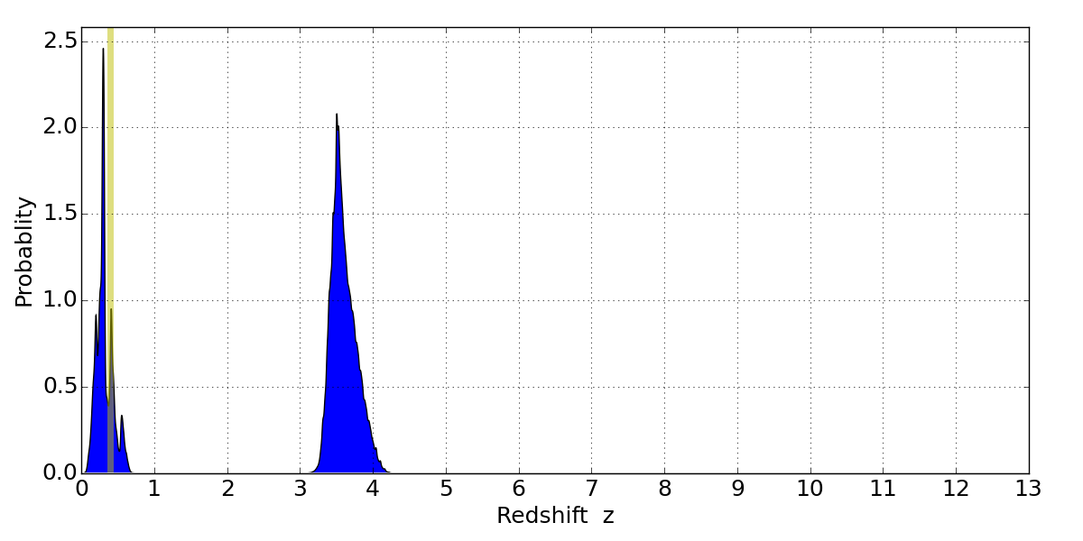 Best viewed in a wide browser window (1200 pixels or more). Download SED & P(z) plots to view larger versions.
