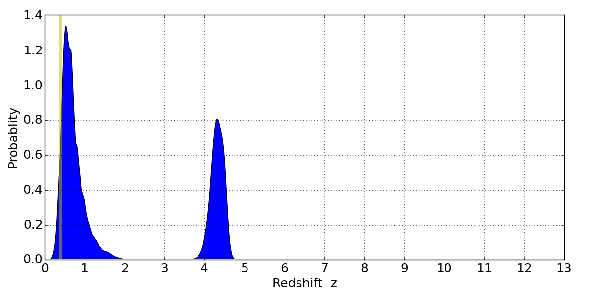 Best viewed in a wide browser window (1200 pixels or more). Download SED & P(z) plots to view larger versions.