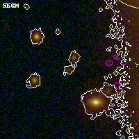 Object #4457 x,y = (2342, 1648) RA, Dec = (00:32:11.928, 18:07:01.56) = (8.04970, 18.11710) BPZ = 0.445 [0.229--4.108] type = 7.80 (SB1_B10 - Scd_B10) chisq2 = 0.62 ODDS = 0.14 z_cluster = 0.396