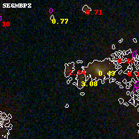 Object #4504 x,y = (2711, 1613) RA, Dec = (00:32:10.368, 18:06:59.76) = (8.04320, 18.11660) BPZ = 2.343 [1.217--2.683] type = 9.40 (SB2_B10 - SB3_B10) chisq2 = 1.03 ODDS = 0.56 z_cluster = 0.396