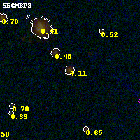 Object #4510 x,y = (3442, 1614) RA, Dec = (00:32:07.296, 18:06:59.76) = (8.03040, 18.11660) BPZ = 4.112 [0.212--4.236] type = 8.50 (SB2_B10 - SB1_B10) chisq2 = 0.69 ODDS = 0.52 z_cluster = 0.396