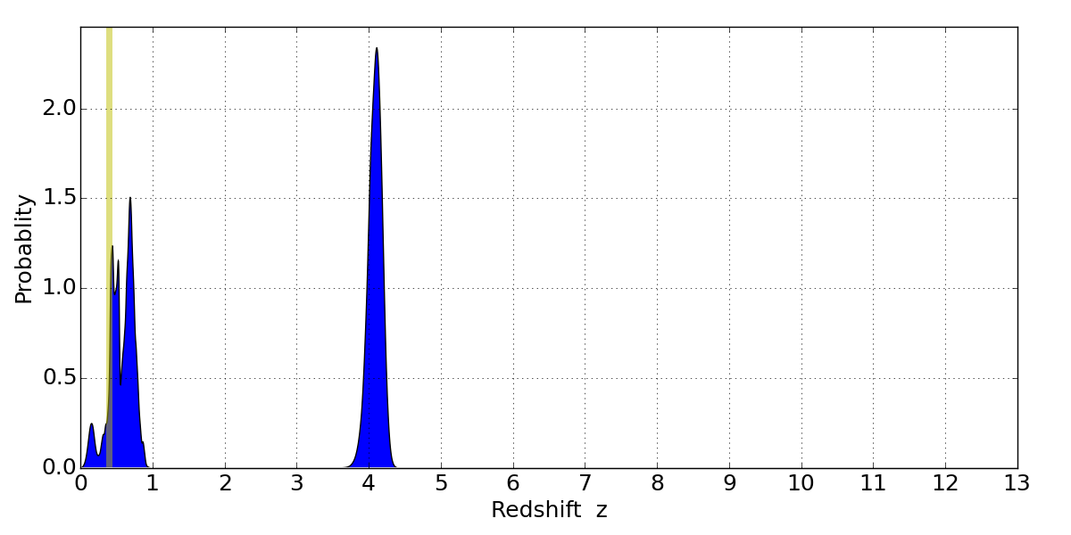 Best viewed in a wide browser window (1200 pixels or more). Download SED & P(z) plots to view larger versions.