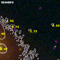 Object #4533 x,y = (3086, 1599) RA, Dec = (00:32:08.784, 18:06:58.68) = (8.03660, 18.11630) BPZ = 3.733 [0.190--4.207] type = 10.30 (SB3_B10 - SB11_A_0_l) chisq2 = 0.11 ODDS = 0.38 z_cluster = 0.396