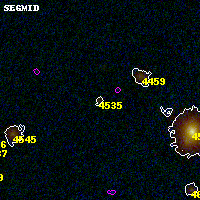 Object #4535 x,y = (1809, 1619) RA, Dec = (00:32:14.160, 18:07:00.12) = (8.05900, 18.11670) BPZ = 0.598 [0.177--4.259] type = 8.90 (SB2_B10 - SB1_B10) chisq2 = 0.83 ODDS = 0.16 z_cluster = 0.396