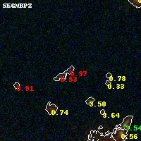 Object #4585 x,y = (3305, 1570) RA, Dec = (00:32:07.872, 18:06:56.88) = (8.03280, 18.11580) BPZ = 0.969 [0.680--1.123] type = 9.50 (SB3_B10 - SB2_B10) chisq2 = 2.64 ODDS = 0.59 z_cluster = 0.396